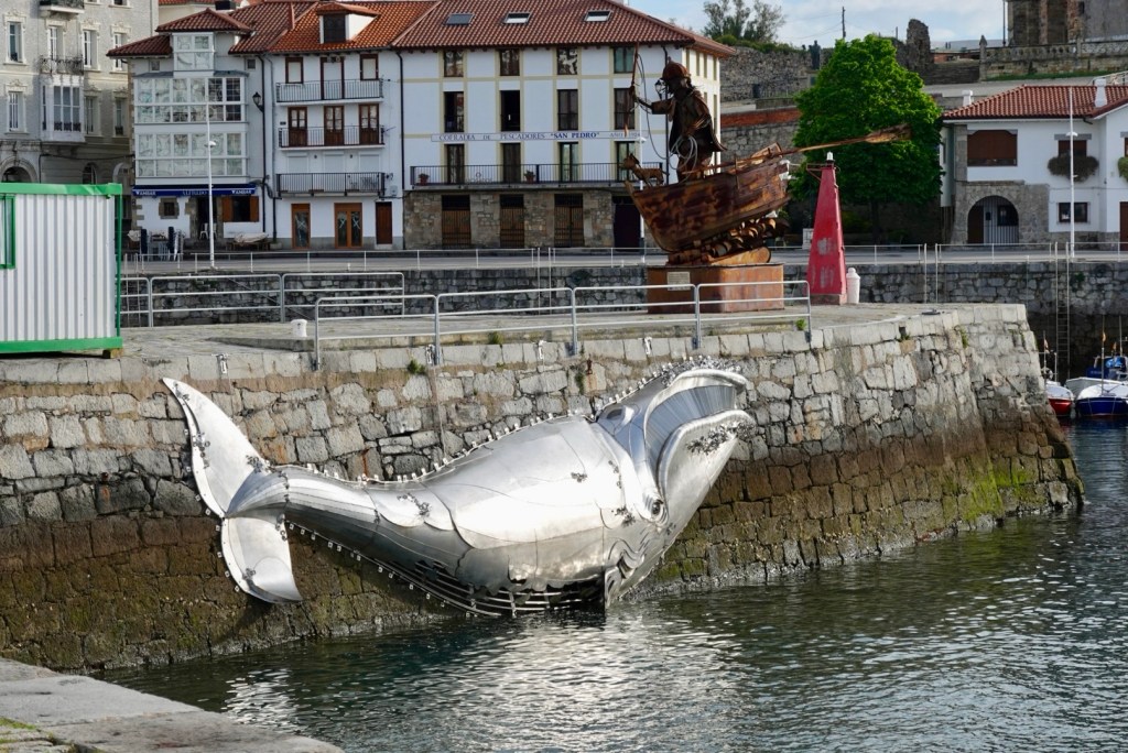 Fortunately, our normal early start was slightly less critical today as we had a relatively easy run to Laredo planned. The weather was much better than the forecast as we set off along the promenade, and we were delighted to see the ‘whale’ glinting in the sun below the sculpture we captured yesterday. The whale is designed to re-emerge at low tide.