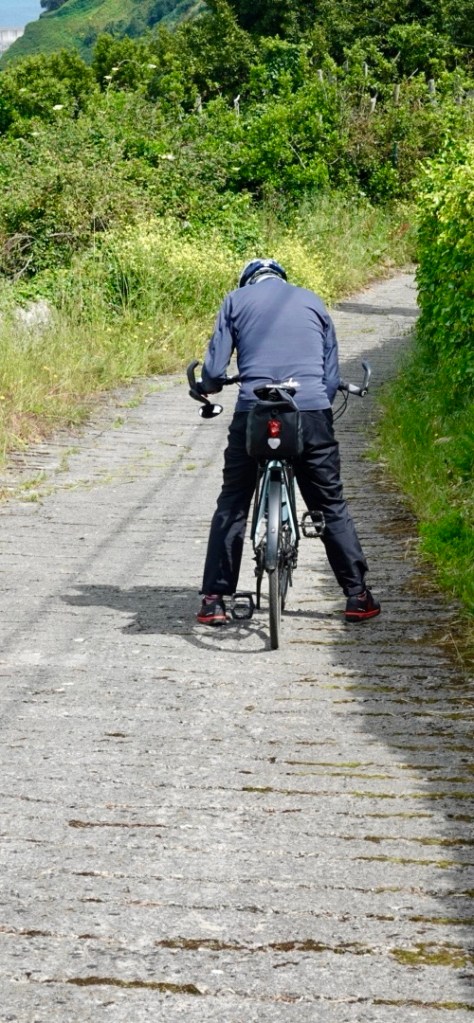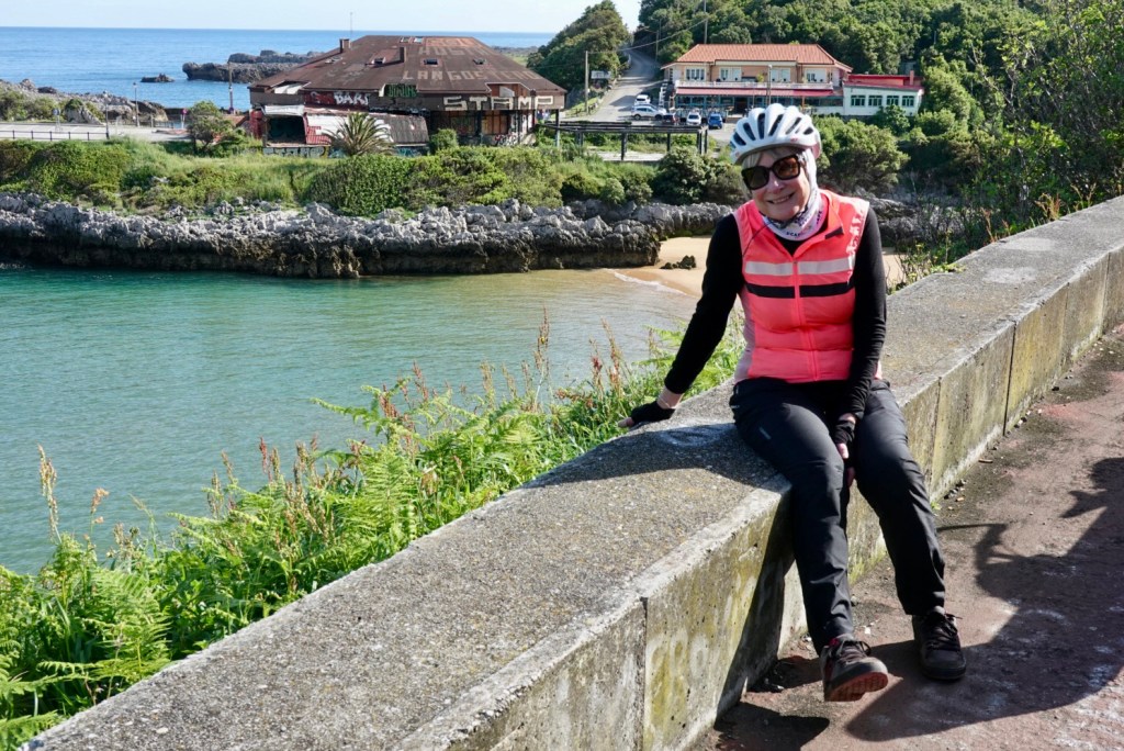 Finally, Laredo and its magnificent beach were laid out before us and we anticipated a flying entry into today’s resting place. Unfortunately our GPX track tends towards purism and we switched from the smooth N-road to a concrete back lane. It was extremely steep again and Linda decided to walk. Meanwhile I was checking my GPS to see if I had gone off route.