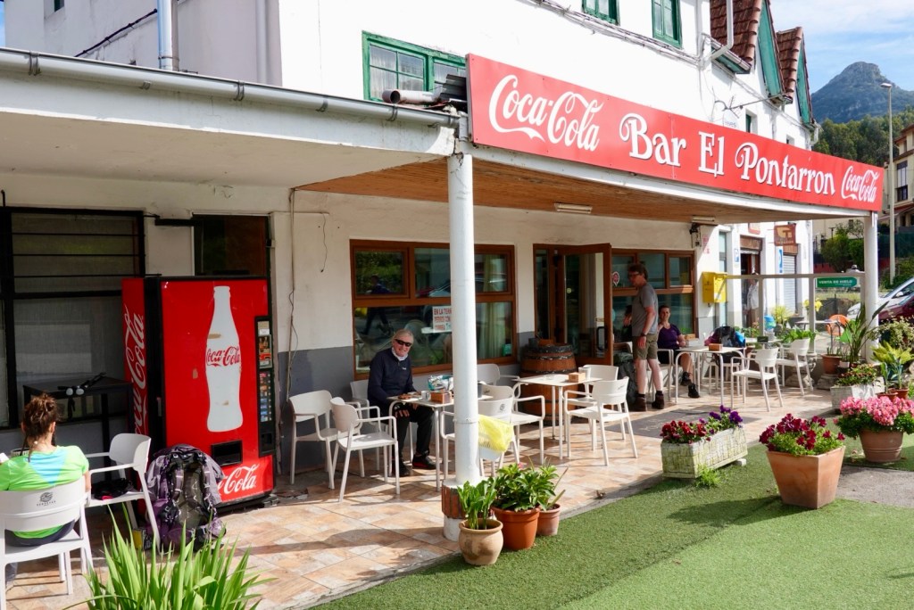 Just before starting the next big climb of the morning a small bar offered refreshment. It was a very popular spot for pilgrims.