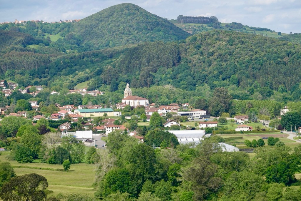 Given the state of the unsurfaced roads after the poor weather we had decided not to follow precisely the Camino but to stick to the old main road. This route is publicised as an official variant for the walking pilgrims and we were intrigued to note that the majority of pilgrims opted for our way! At a mirador halfway up our final major climb we had a panoramic view of the Liendo Valley.