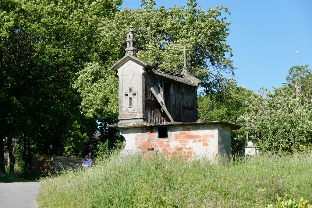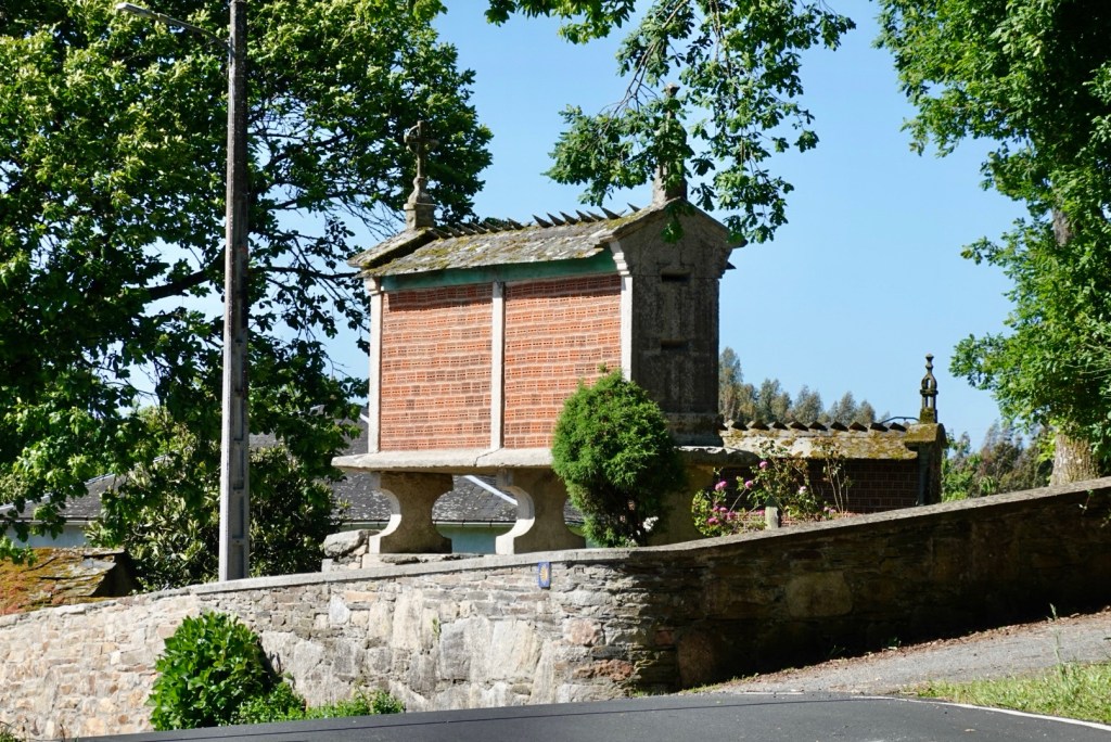 Today we saw our first typical Galician horreos and you will see how very different they are to those in Asturias. Again, our friends Brian and Liz recently sent us examples of Portuguese ones and they were very like these Galician ones. We think they have a more funerary look than the Asturian ones that seem more related to alpine granges. As you’ll gather we rather like them all!